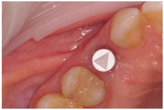The implant surgery was performed with antibiotic cover, one-shot therapy: 1 dose of clindamycin 600 mg (MIP Pharma, Gdansk, Poland). Infiltration anesthesia was applied using Septanest 1:100,000 (SEPTODONT 58, Saint Maur des Fossés, France) with the Wand STA device (Milestone Scientific, Inc., Roseland, NJ, USA). A diamond drill was used for deepithelialization and a blade (no. 15C) was used for an H-shaped papilla-preservation incision, shifted palatially. Next, each implant was inserted at bone level, according to the procedure provided by the manufacturer. Subsequently, the primary stability was assessed using Ostell ISQ. The measurements were performed three times in the mesiodistal, buccal and palatal, as well as periapical direction measurements with the application of Ostel smartpeg for the Thommen implants. The smallest value was considered to be the cut-off point. Open healing was used with a standard healing screw. The partially deepithelized flap was repositioned and stabilized with 0–5 simple interrupted sutures (Seralene