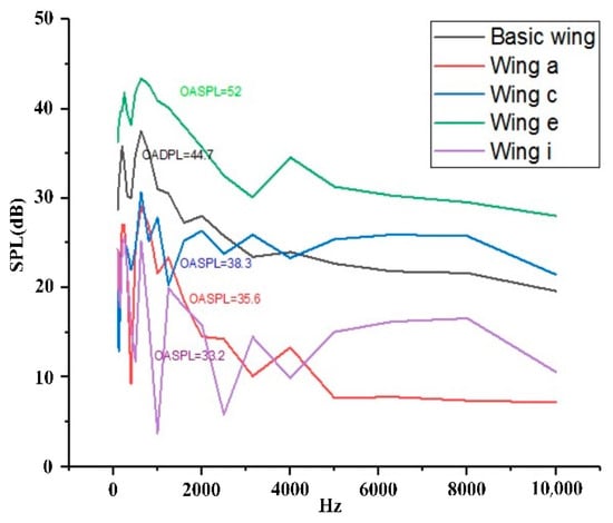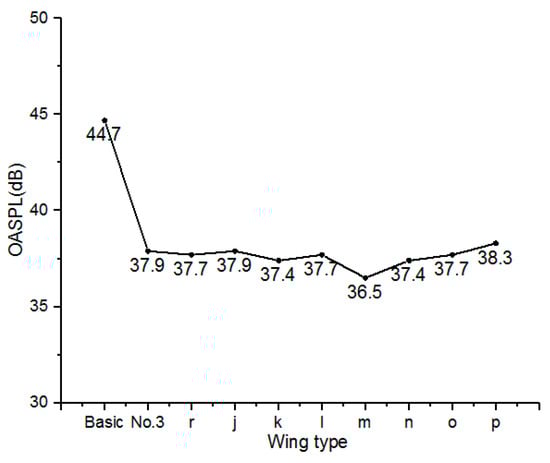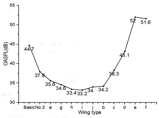 Table 6, and the OASPL of the bionic wing was plotted as a curve, as shown in