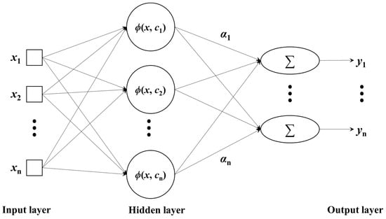 where c is a shape function coefficient with a positive constant variable, and r is the Euclidean distance. Give the interpolation data at the data points , the RBFN interpolant through the network learning process as shown in Figure 8 is defined as follows: