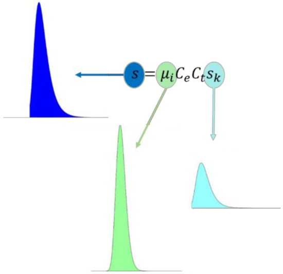 When using Equation (1) or Equation (2), the exposure coefficient and the thermal coefficient are usually considered as deterministic parameters, while the ground snow load (for which measurements are available) and the shape coefficient are described by random variables. Figure 1 illustrates the stochastic distribution of the parameters in the chain defining the actions induced by snow on roofs.