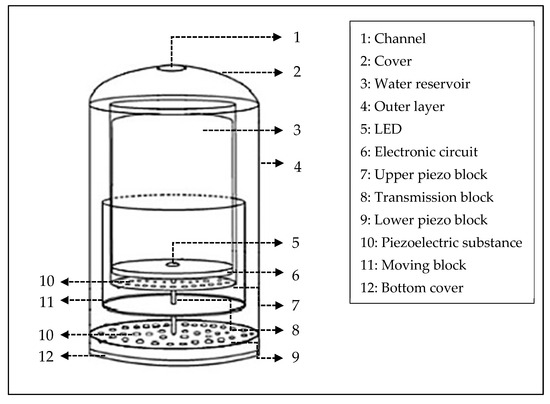 Certain UV water disinfection systems use photovoltaic panels [7,8], and the electric network as an electrical power source. Photovoltaic-panel-powered systems typically require photovoltaic (PV) cells-based solar energy which makes them fragile and so unsuitable for extreme conditions. Battery-powered systems have a very limited lifetime due to the capacity of battery cells, or size and weight constraints of the battery. Furthermore, batteries may not be stable in extreme temperature conditions and they can pollute the water [9]. Therefore, UV water disinfection systems powered by electrical battery cannot be used effectively in the field. In this regard, piezoelectricity may pave the way for powering portable UV disinfection systems. Piezoelectricity could be an effective energy harvesting mechanism for powering portable UV water disinfection systems. It may simply generate the required energy by applying mechanical stress, for example, simply shaking or vibrating by the user [10]. Various piezoelectricity energy harvesters have been developed and tested so far, such as a walking charger based on piezo-electric material [11], lead–zirconate–titanate (PZT) material, the Quick Pack (QP) actuator, the macro-fiber composite (MFC) for recharging batteries [12], and piezoelectric energy harvesters based on vibration [13]. To some extent, even natural vibrations can be used to supply the required power for UV water disinfection systems.