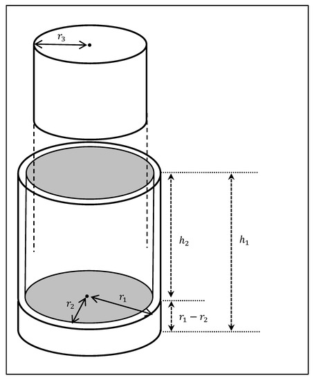 Furthermore, the term can also be calculated by using the outer–inner radius of the block ( ), the height of the block (), as well as the material density of the block () as follows