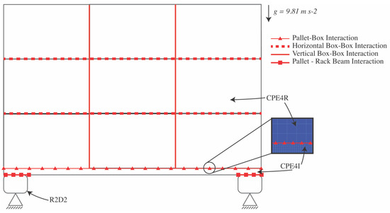 The racking beam supports were discretized as 2-node, linear, discrete, rigid elements with a length of 2.54 mm and rigid link formulation, represented in Abaqus as rigid 2-noded 2D (R2D2) element. A summary of the mesh properties for each object is shown in Table 6.