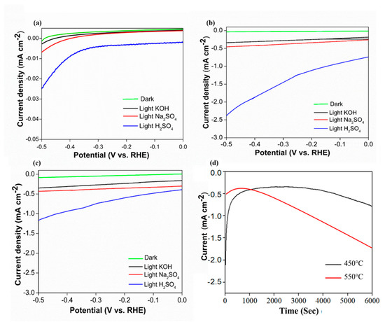 3.4.1. The Effect of the Type of Electrolyte on the Photocurrent Generation