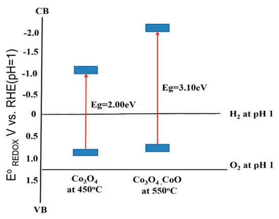 - Moridon, S.N.F.; Salehmin, M.I.; Mohamed, M.A.; Arifin, K.; Minggu, L.J.; Kassim, M.B. Cobalt oxide as photocatalyst for water splitting: Temperature-dependent phase structures. Int. J. Hydrogen Energy 2019, 44, 25495–25504. [Google Scholar] [CrossRef]