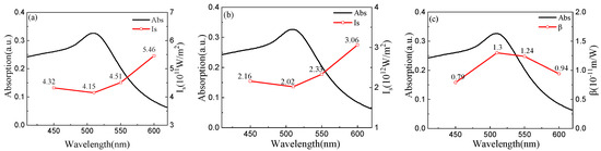 Wang, J.; Shao, Y.; Chen, C.; Wu, W.; Kong, D.; Gao, Y. Wavelength-Dependent Optical Nonlinear Absorption of Au-Ag Nanoparticles. Appl. Sci. 2021, 11, 3072. https://doi.org/10.3390/app11073072