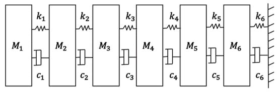 A six-DOF linear chain model system of a cantilever beam is shown in Figure 1. The mass matrix , stiffness matrix , and damping matrix of the system are expressed as follows: