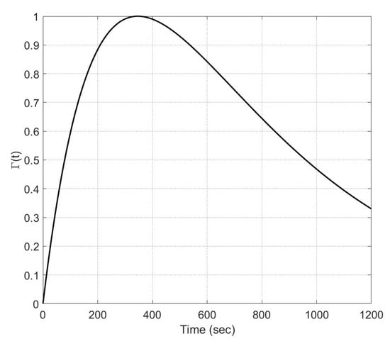 The nonstationary white noise discussed in this paper will be imported into the nonstationary process in the form of a product model: , where is a deterministic envelope function, is a stationary white noise. The nonstationary white noise used in this paper, as shown in Figure 2, is composed of a stationary white noise with power spectrum density and envelope function , as shown in Figure 3 and Figure 4.