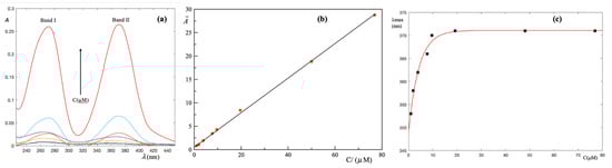 The effect of Cr(VI) concentration was studied by monitoring , i.e., the wavelength corresponding to the maximum of band II, as a function of C. The results are displayed in Figure 2c. A detailed numerical analysis indicates that experimental results are well described by a saturation curve of the type: