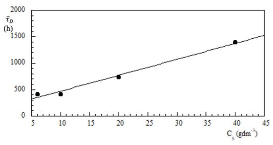 Thus, the model predicts that the diffusion time against the adsorbent concentration increases linearly, at a low Cr(VI) concentration.