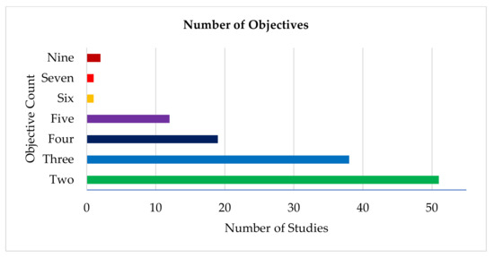 In this aspect, we show the number of objectives the community employing in practice by grouping the studies based on the objective count. This will discover the current practice of SBSE practitioners and the future direction of the research.