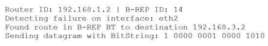 The backup route is used in the case of protected interface failure. This means that if the router detects a link failure or a neighboring router connected through a protected link becomes unavailable, the router will start using the IP FRR mechanism and its pre-prepared backup plan. The B-REP algorithm starts encapsulating original IP packets using the BIER header. In the header’s BS field, the router writes the prepared correct BS value that represents the alternative route from a router that detects the problem (called as S router) towards the D router. By BIER encapsulation and correct BS value, the original packets are virtually tunneled around the failed element.