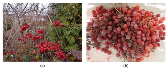 - Česonienė, L.; Daubaras, R.; Viškelis, P. Evaluation of productivity and biochemical components in fruit of different Viburnum accessions. Biologija 2008, 54, 93–96. [Google Scholar] [CrossRef]