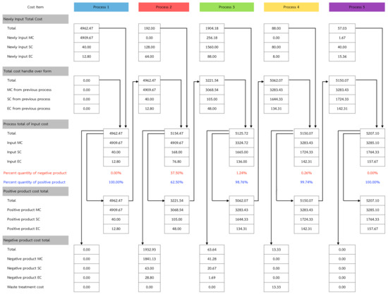 In recent years, Kokubu and Tachikawa [13] studied the feasibility of MFCA application in Japan and stated the environmental management cost in 2003 by METI. It was revealed that the organizations that implemented MFCA showed practical solutions and efficient performance. As a result, the implementation of MFCA has been widely considered in Japan. Nakajima [14] gathered case studies of Japanese companies that applied the MFCA technique for improving production process along with other quality control tools and showed that they received efficient results. MFCA was considerably referred to his study [15,16].