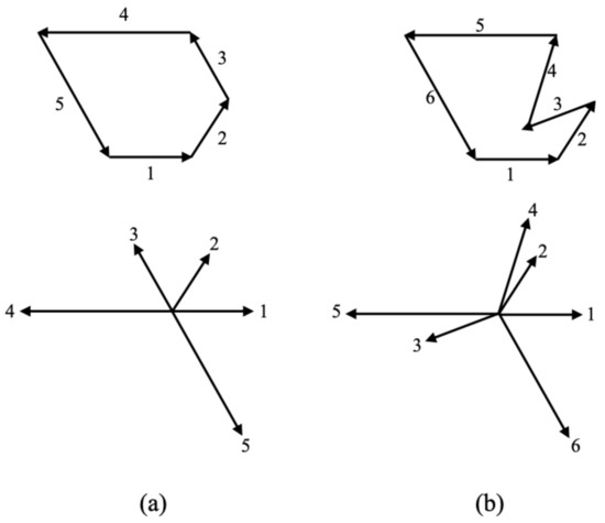 A polygon can be categorized into 2 types, convex and non-convex. For a convex polygon, the edges are arranged by the angle consecutively in a clockwise direction, as shown in Figure 8a. A non-convex polygon is more complicated as its edges are not arranged in sequence. An example of a convex and non-convex polygon is shown in Figure 8. As seen in Figure 8b, the 4th and 5th edges have a narrower angle than the 3rd edge, and this represents a non-convex polygon.