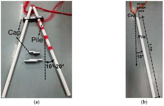 The diagram of the model pile. (a) The symmetrical batters and (b) the single batter pile.