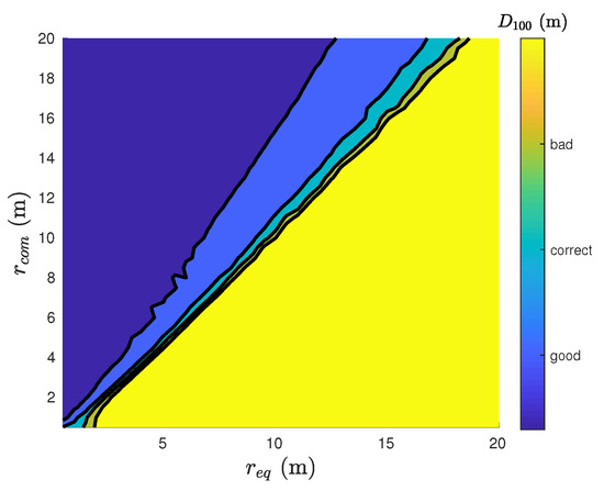 As , is always positive, so the potential field is convex. As we have built as a gradient descent strategy, the equilibrium distance can be found with the minimum of in the sense of Lyapunov, whatever the agent i: