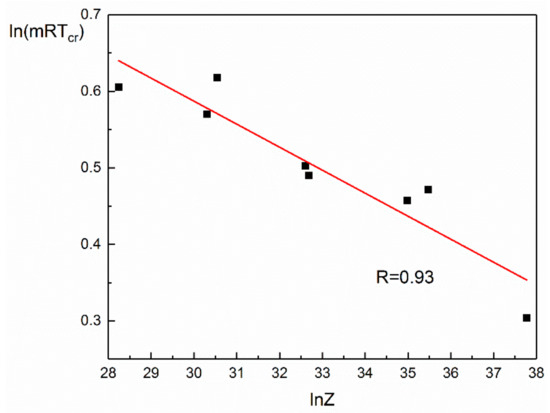 The dependence of the critical values of the modified Rice and Tracy criteria on the Zener–Hollomon parameter.