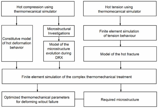 Three considered stages of the technology development may be united by the finite element (FE) approach. At the current state, the finite element simulation of hot deformation and heat treatment processing is the most powerful tool providing the optimal thermomechanical parameters without any sufficient material expenses [40,41,42,43,44]. This approach to calculating deformation and fracture processes has been successfully applied for the conditions of cutting [45], cold [46], and hot plastic deformation [47,48].