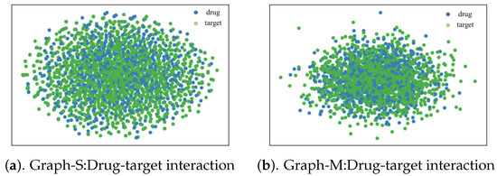 We visualized the embedding learned by Graph-M and Graph-S to see if Graph-S could capture the structure of an interactive network better than Graph-M. Graph-M uses only mutual information between node-level and graph-level representations, whereas Graph-S uses only mutual information between substructure and graph-level representations. Then we visualize the learned embedding in Figure 5. We could observe that there are potentially linked targets near some relatively marginal drug points in the embedded space which Graph-S learns. And the distribution of drug targets in the embedded space of Graph-M learning is more concentrated. We further corroboration with AUROC and AUPR indicators.