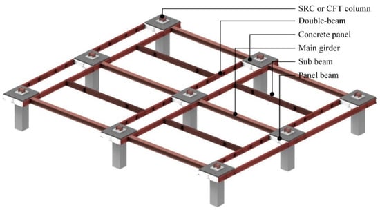 Structural configurations of steel double-beam floor system with the concrete panel.