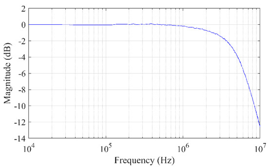 The frequency response was also measured (Figure 12) using a Keysight N9320B spectrum analyzer. Since an off-chip buffer was employed to avoid loading the analyzer, total load capacitance was CL = 120 pF. The cutoff frequency of the proposed OTA was 4.48 MHz, which corresponds approximately to the GBW, because of the dominant pole design.