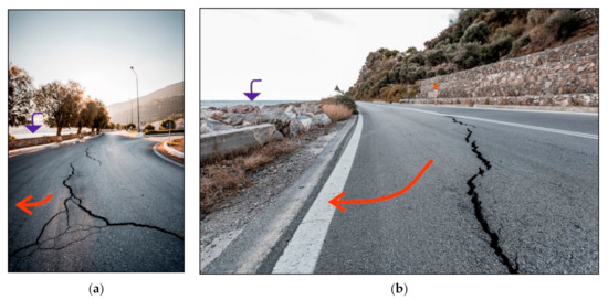 In addition to the permanent coseismic uplift and subsidence identified at the studied sites, the primary earthquake environmental effects also included coseismic surface ruptures located in the north-central part of Samos. The observed ruptures could be interpreted as evidence of coseismic surface faulting. Based on the provided focal mechanisms and the spatial distribution of the aftershock sequence [1] and on results from preliminary modeling of earthquake slip by inversion of GNSS and InSAR data [2], it was concluded that the causative fault is the E–W-striking and N-dipping normal fault offshore northern Samos. Based on its dimensions and the empirical equations of magnitude and rupture length from [48], it was concluded that this fault has the potential for the generation of an Mw = 7.0 earthquake.