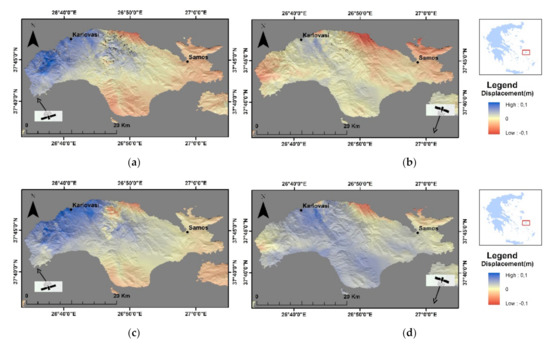 5.1.1. Permanent Surface Deformation in the Northwestern Part of Samos