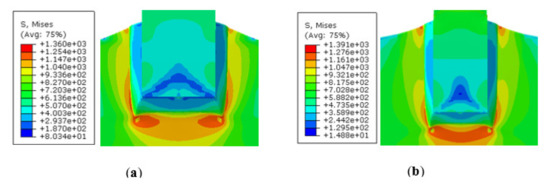 Von Mises stress contours at ultimate limit state: (a) Model L35W40; (b) Model L55W40.