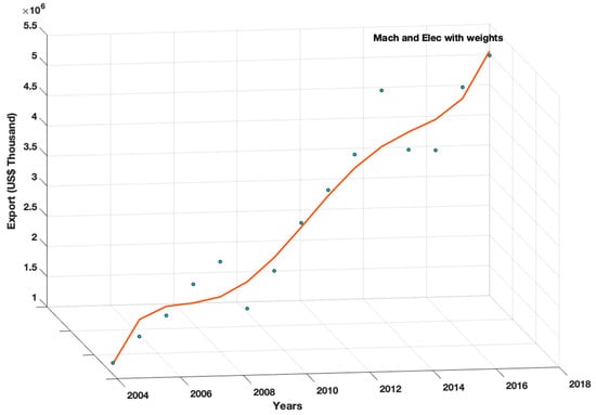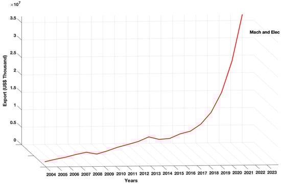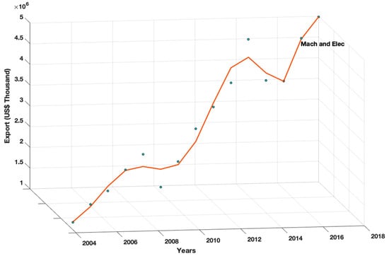 The summarized visualization of the machinery and electrical machinery export for the selected period is demonstrated in Figure 7.