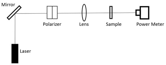 By determining the refractive index spectrum using FTIR, the optical transmission spectrum of PMN-PT ceramic can be calculated by Equation (17). In order to verify the calculation results, the experimental set-up shown in Figure 7 was developed in the lab. A 1.5 mm × 5 mm × 5 mm polycrystalline PMN-PT slab was polished and used as the sample in that set-up. The transmission of that PMN-PT slab is measured by dividing the intensity of 532 nm, 632.8 nm, and 1550 nm lights, measured by the power meter, with the slab in its place by the intensity without the slab in the pathway.