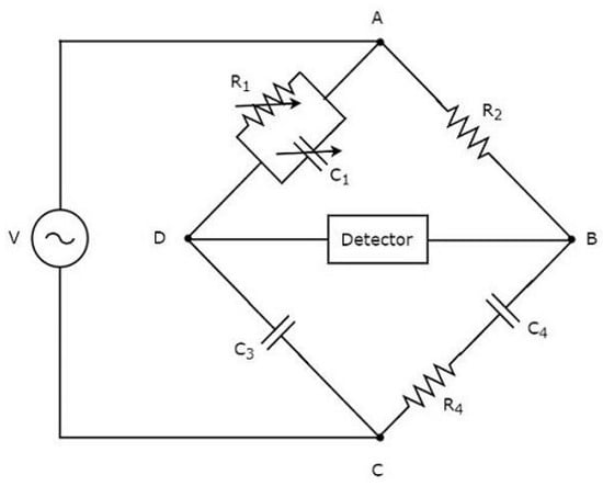 In this study, impedance measurements were performed to determine the dielectric constant of the device under test (DUT) as well as various other electrical properties. Special AC bridge circuits are used to accurately measure the complex impedance values for the DUT. More specifically, capacitance bridges such as the Schering Bridge (Figure 8) were used to assess the capacitance values of the DUT and subsequently calculate the dielectric constant as