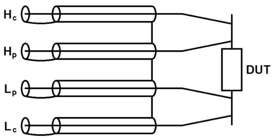 Implementation of the capacitance bridge is greatly simplified through the use of advanced LCR measurement devices. These meters are purpose-built to measure the inductance (L), capacitance (C), and resistance (R) of connected devices using a variable AC source. Many LCR meters utilize four BNC connections to independently measure current and voltage. These four connections can be configured as an auto-balancing bridge circuit which quickly and automatically determines the capacitance value for a DUT (Figure 9).