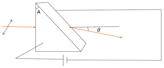Chen et al. employed potassium tantalate niobate as a single EO crystal in their EO scanners [22]. The most used single crystal in EO steerers is LiTaO3. Hisatake et al., Scrymgeour et al., Casson et al., and many more used LiTaO3 in their EO scanners [12,13,17,20,23,24]. Because both of those two crystals are single ferroelectric crystals, their dipole orientations must be adjusted by applying more than 21 kV/mm voltage. In addition, multiple prism-shaped domains must be created to steer a small beam to a few degrees by applying more than 14 kV/mm on the crystal. Furthermore, those crystals are temperature-dependent [5,15], and their EO scanners were polarization-dependent. Polarization dependency makes the scanners deflect the light if it is only polarized in a certain direction. Therefore, polarization dependency limits these scanners’ application even in one dimension and makes it impossible to steer the light in two dimensions in one crystal.