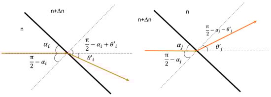 where F is the so-called “finesse” value [30]. If the source light is incident on the sample at any angle other than normal, as occurs at the focal plane of FTIR spectrometers, then the n ( ν ) d term from Equation (8) must be substituted with Equation (9), which takes into account the angle of incidence.