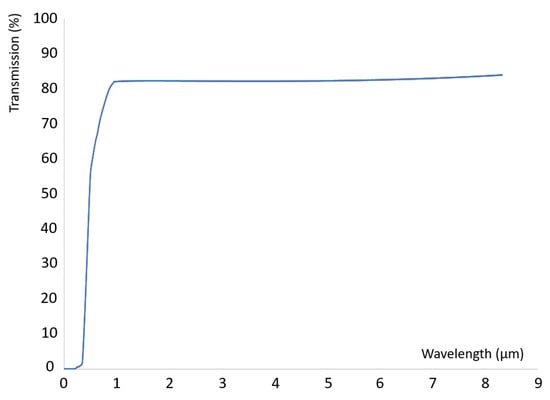 Using Equation (7), it was estimated that the interference fringes of the prepared PMN-PT sample have a period of approximately 5 cm−1. With this in mind, the FTIR spectrometers were configured with a scanning resolution of 0.25 cm−1 to produce well-defined fringes in the final transmission spectrum. Additionally, the transmission values were averaged over thirty-two scans to increase waveform smoothness.