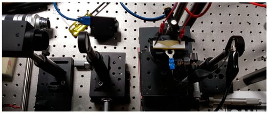 Figure 19. Light deflection test with the 7.5 mm × 7.5 mm × 40 mm polycrystalline PMN-PT with voltage electrodes.