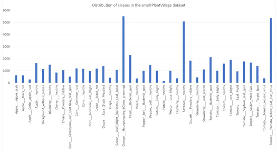 Distribution of classes in the small PlantVillage dataset.