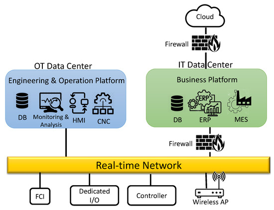- Wollschlaeger, M.; Sauter, T.; Jasperneite, J. The future of industrial communication: Automation networks in the era of the internet of things and industry 4.0. IEEE Ind. Electron. Mag. 2017, 11, 17–27. [Google Scholar] [CrossRef]