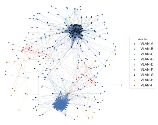 The network topology is illustrated in Figure 4, which is composed of multiple control network VLANs and one server network VLAN (client/server VLAN). The server network VLAN is connected to the IT network via a firewall. For the sake of privacy, we replace the real VLAN identifier values with letters and present them in letters throughout this section.
