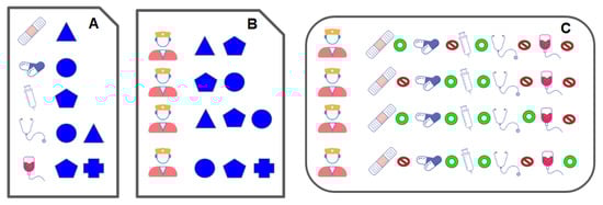 Patients are key players in HHC or an HHCRSP. Let be a set of patients scattered in a geographic area who need care services. For each , there is a subset such that these jobs involve patient . Obviously, at least one job has to be scheduled in the given planning for each patient.