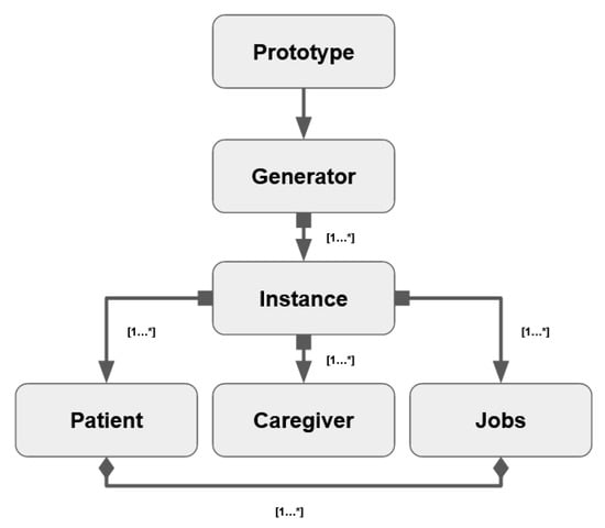 Within this model, a patient has a list of needed jobs. The jobs are care services that must be performed at patients’ homes and have different natures: providing medication, performing an injection, changing a bandage, etc. A single patient may relate to one or more jobs. However, job belongs to a unique patient. According to Mosquera et al. [21], a patient is mostly related to three jobs per day. A caregiver usually performs six jobs per day.