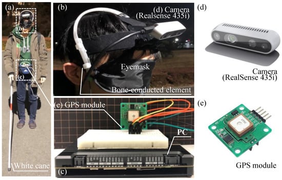 A visually challenged person perceives the environmental situation using information obtained from sensory organs other than the eyes in all cases, but, especially, when walking in the city, the individual uses information obtained from the auditory and tactile senses. Tactile information is mainly obtained through a white cane and from the unevenness of the ground through the soles of the feet, whereas auditory information is mainly obtained from sounds of approaching cars and other moving objects, footsteps of others, and signal sounds in public spaces. The type of object or its relative position may be determined from the sound, whereas in cases related to human echolocation, the existence of an object is recognized by the sound reflected from obstacles, such as walls [3,4]. According to Rowan et al. [4], humans have been found to use echoes to detect objects. As for the sense of the directionality of objects, Nilsson and Schenkman [5] showed that blind people are more sensitive to binaural sound localization than sighted people. As mentioned above, visually impaired people indirectly detect morphological characteristics in their surrounding environment based on information of sounds in their environment.