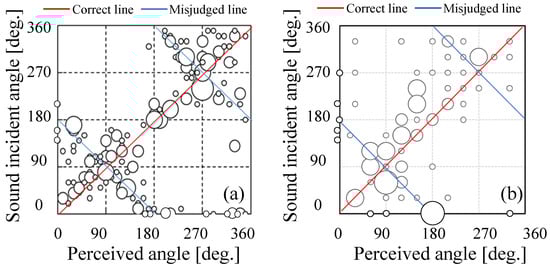 Sound localization performance for the cases in which the test signals were presented by (a) air-conducted sound and (b) bone-conducted sound [22].