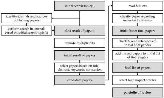Method of systematic literature search applied, modified according to [22,32,33].
