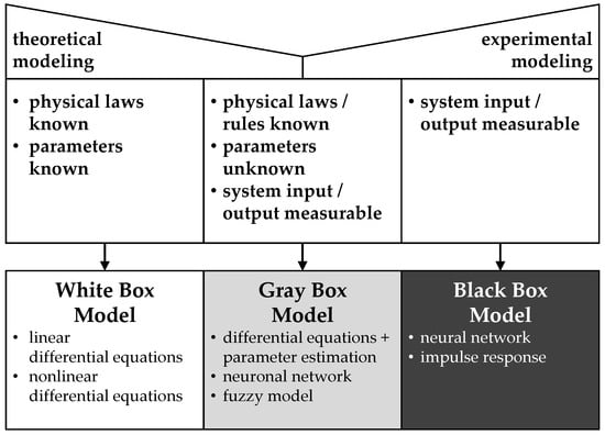 As a mixture of white and black box models, gray box models, such as fuzzy models or differential equations, know physical dependencies of input and output data, but not any generally valid parameters that describe the physical system. They use physical representations and approximations with model parameters, which have to be gained for each physical system they describe, i.e., by experiments. Accordingly, their application is restricted to one well-defined physical system and its estimated parameters [34].