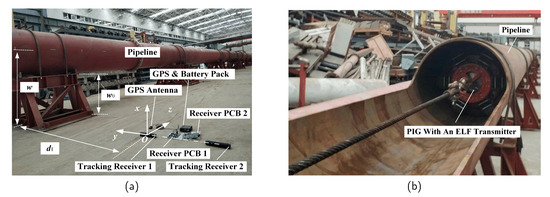 Therefore, the paper proposes a novel tracking receiver system with only two receiving coils distributed vertically and a corresponding 4-D tracking algorithm, which can achieve high-precision and 4-D tracking of the PIG. The dual receivers will detect the radiated magnetic field from transmitters at different heights. Using these dual magnetic signals and the distance between the dual receivers, it becomes possible to achieve 4-D tracking of the PIG. The tracking algorithm is mainly based on the origin symmetry feature of the radial component of the transmitter’s magnetic field, which has the smallest error in various assumptions of the magnetic analysis. It determines that the tracking error of the algorithm proposed in this paper will be smaller than traditional ELF-AGMs. The algorithm is also proposed to solve the redundancy problem in the previous positioning system. First, the paper introduces the design of the dual receivers tracking system in detail. Then, based on the MDM, three possible cases are presented to discuss the 4-D tracking model and corresponding analytical solutions, which are verified by a finite element model (FEM). Moreover, a 4-D tracking algorithm is developed. Furthermore, physical experiments and filed tests that synthesize three cases are performed. The results of FEM simulation and physical experiments are used to prove that the algorithm is feasible and accurate. Finally, the high robustness of the 4-D tracking algorithm is demonstrated.