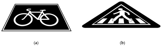 (a) “Attention bicycle” icon. (b) “Attention pedestrian” icon for high-resolution headlamps.