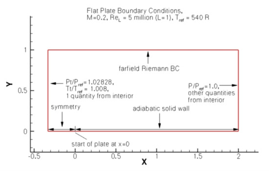 The computational domain and boundary conditions are illustrated in Figure 1. Two levels of mesh refinement were used for this case: where the parallel code used the finest grid and the sequential code used the third finest grid [20]. Figure 2 shows the coarse mesh. Table 3 specifies the freestream boundary conditions for the various turbulence models and codes. The freestream turbulence boundary conditions used in NASA’s FUN3D SST and CFL3D SST were above the recommended range [4], which is