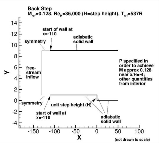 The backward-facing step is a case proposed by Driver and Seegmiller [23] to test how well the turbulence model simulates separated flows. The backward-facing step case is a challenging problem as turbulence models generally have difficulty modeling separated flows.